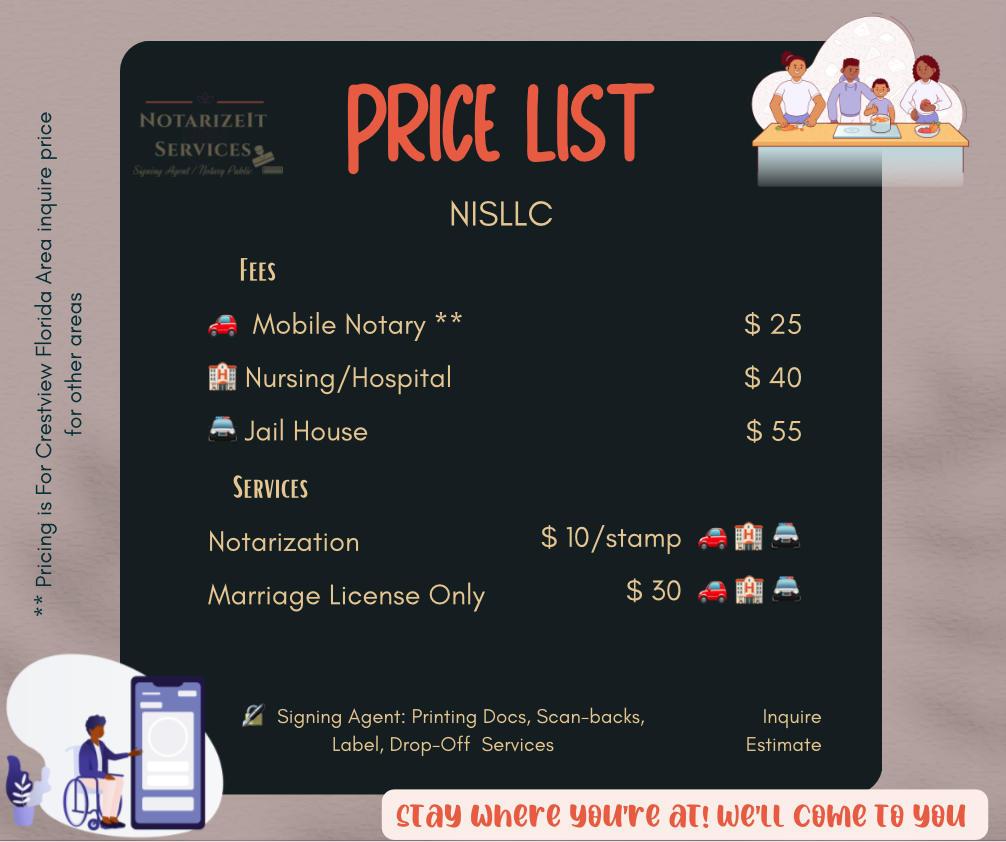 I need a paper notarized today last minute.From the time I called to arriving at my house everything was over in minutes.If we ever need something notarized in the future we will definitely use this company again.Thank you!