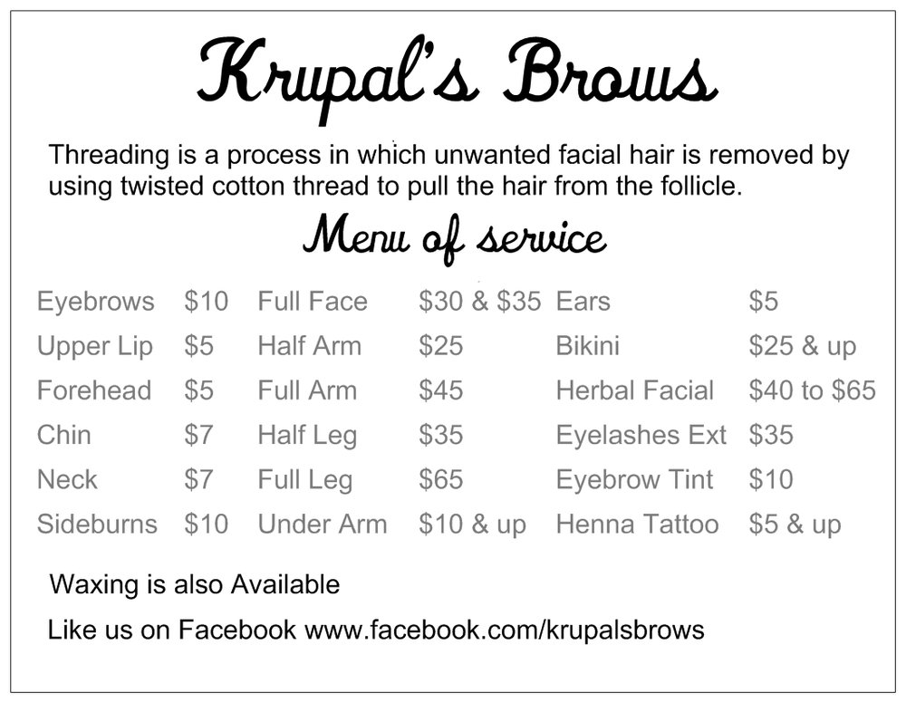 Just had my eyebrows threaded at Krupal’s brow and I’m beyond impressed! From the moment I sat down, Krupal took the time to ask me what I like and don’t like about my brows—something no one has ever done before. That level of care and attention to detail truly made a difference. She shaped them perfectly and made sure I was comfortable every step of the way. I walked out feeling confident and vacation-ready! Highly recommend Krupal’s if you want brows done right. ???