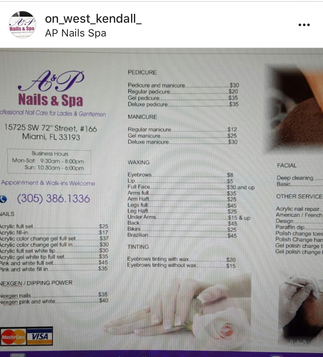 I’ve been here twice so far. Fist time was beginning of April. I got a full set with a nail design and gel pedicure. I was very happy with the outcome. My nails looked great. My nails lasted without breaking or chipping until my visit yesterday (over a month). Just went yesterday for my refill and pedicure. Mia was great. I love the cat eye nails she did and my pedicure was ?. There was no wait and they’re pretty quick for everything that is done. Also, they’re all very nice! Definitely going back here from now on.