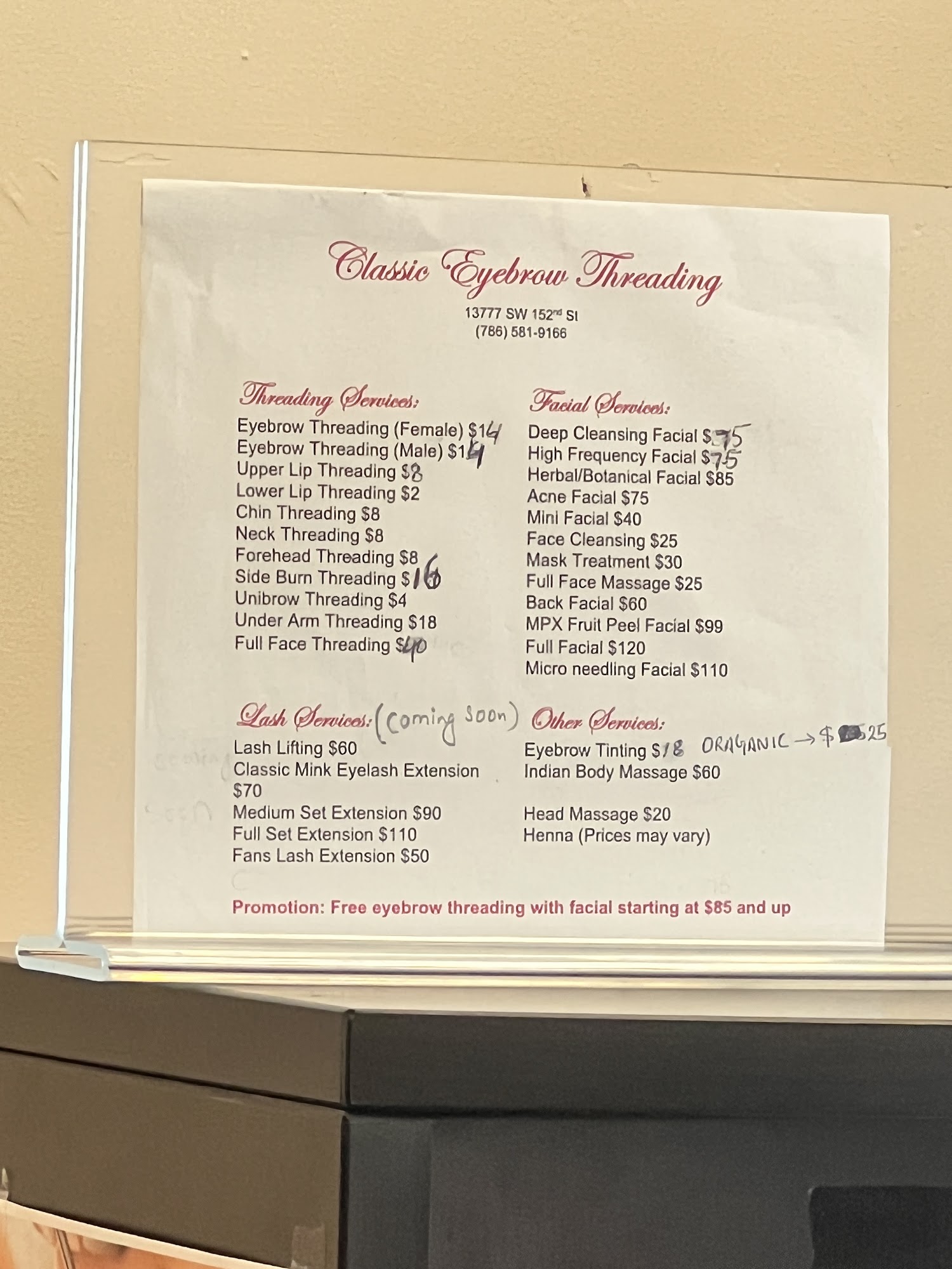 The two ladies who attended us were very personable. The service is thorough and they added aloe gel following the Threading appt. Though they didn't acknowledge us right as we walked in, they made up for it. Prices are very fair