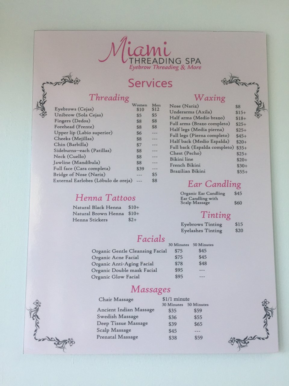 Amazing place. I have been coming here for over 10 years , I do not trust anyone else to do my eyebrows. I have never gone to anyone. Best in miami for eyebrow threading and tinting ! Highly recommend!