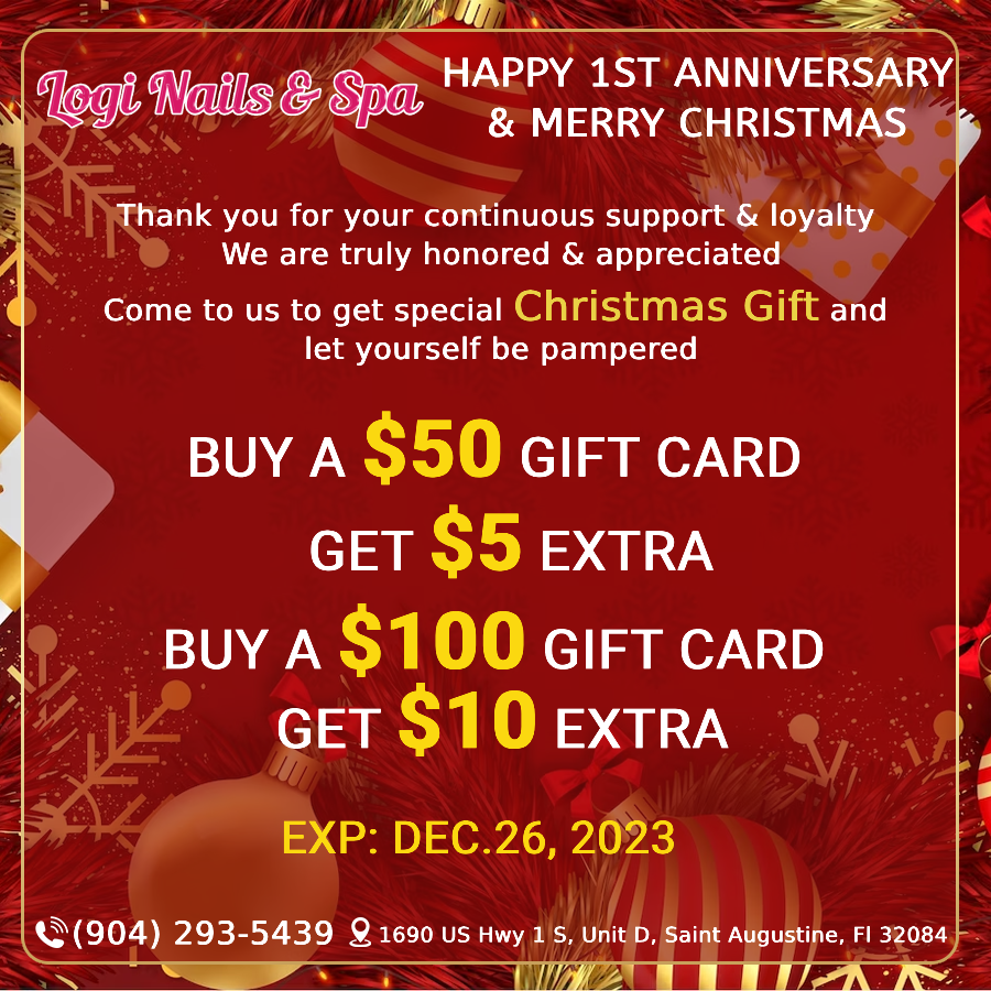 One of the best nail spas i have been to in a long time. I’ve tried multiple spas in st augustine and never have been full satisfied like i have been with Logi. I definitely recommend everyone give it a shot!