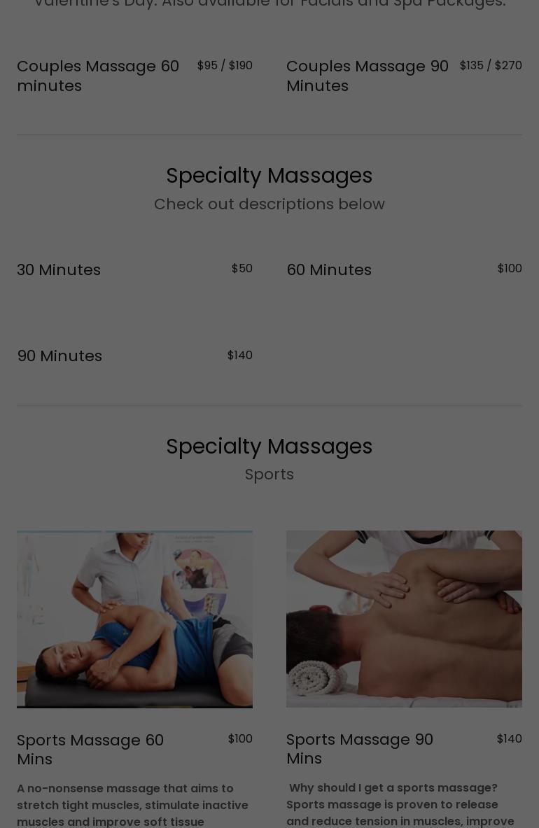 Had just an amazing couple's massage today! It lasted 1 hour and it was amazing! From toes to fingers to legs to shoulders! All covered! Wonderful wonderful! My husband enjoyed it too! 2 of us and 2 of them! It was great! 200! 50 tip, so 250! Worth every penny!