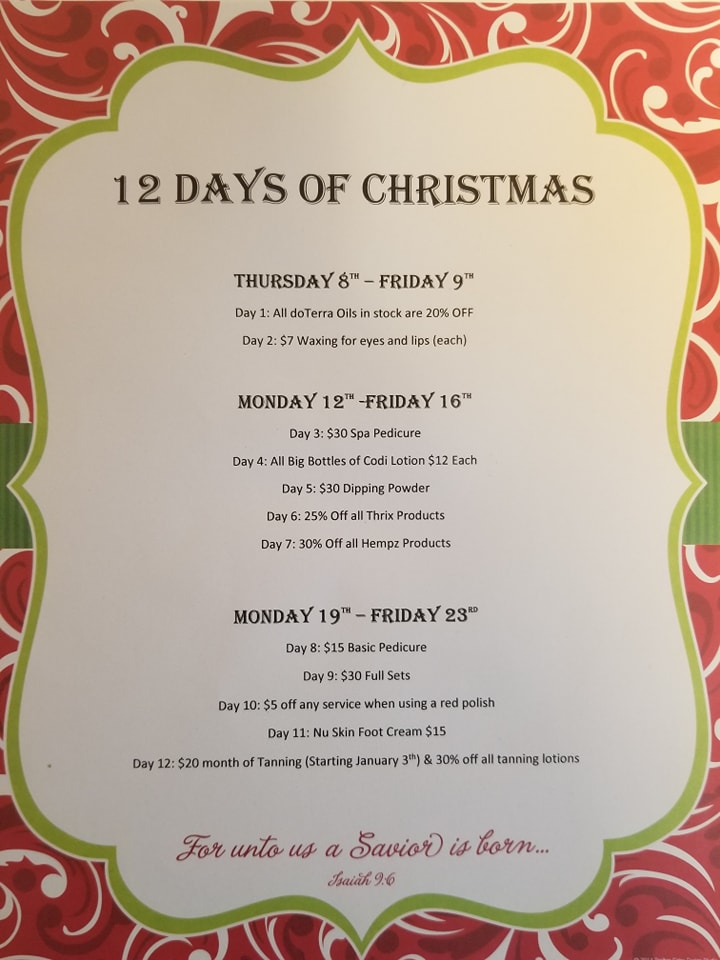 Amazing customer relations. Family atmosphere. Big supporters of our community, especially our sports teams. Not just nail salon. Also tanning beds, spray tans, waxing, and much more. Location includes 2 independent hair salons.