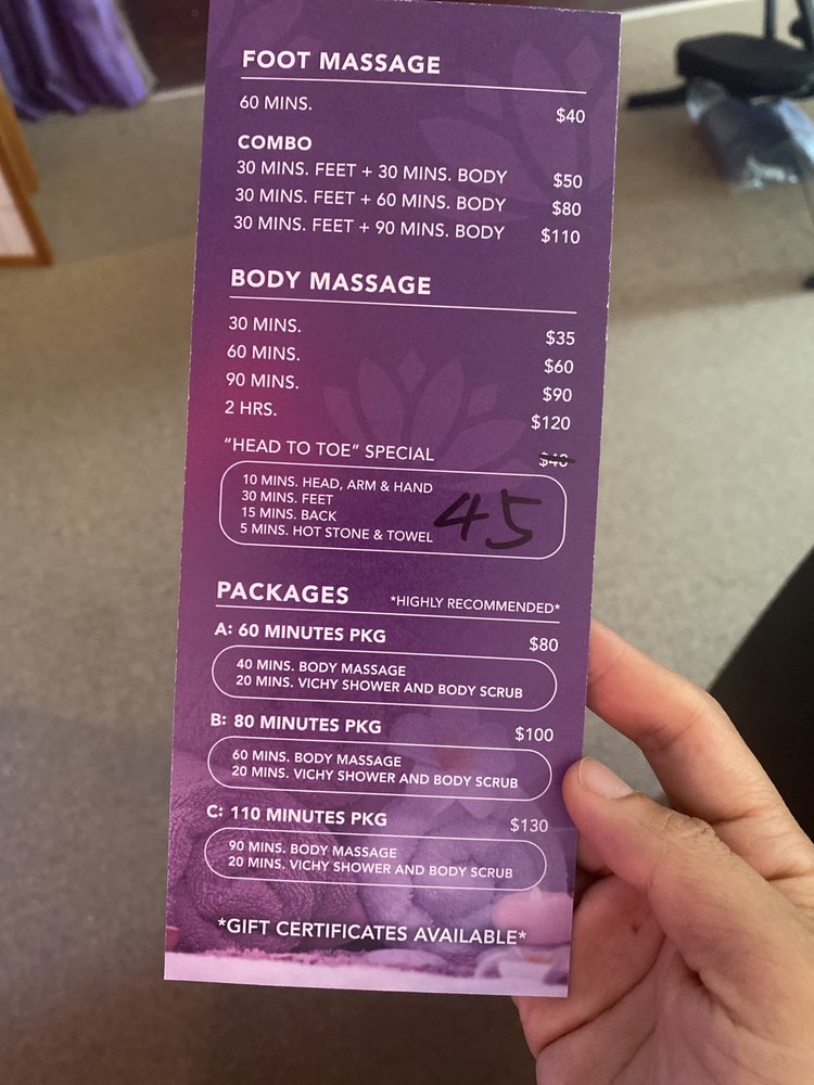I had a wonderful experience here! The staff are very friendly and welcoming, and the therapist was extremely professional and skilled. The place is very clean, and relaxing. I left feeling refreshed and will definitely be coming back!