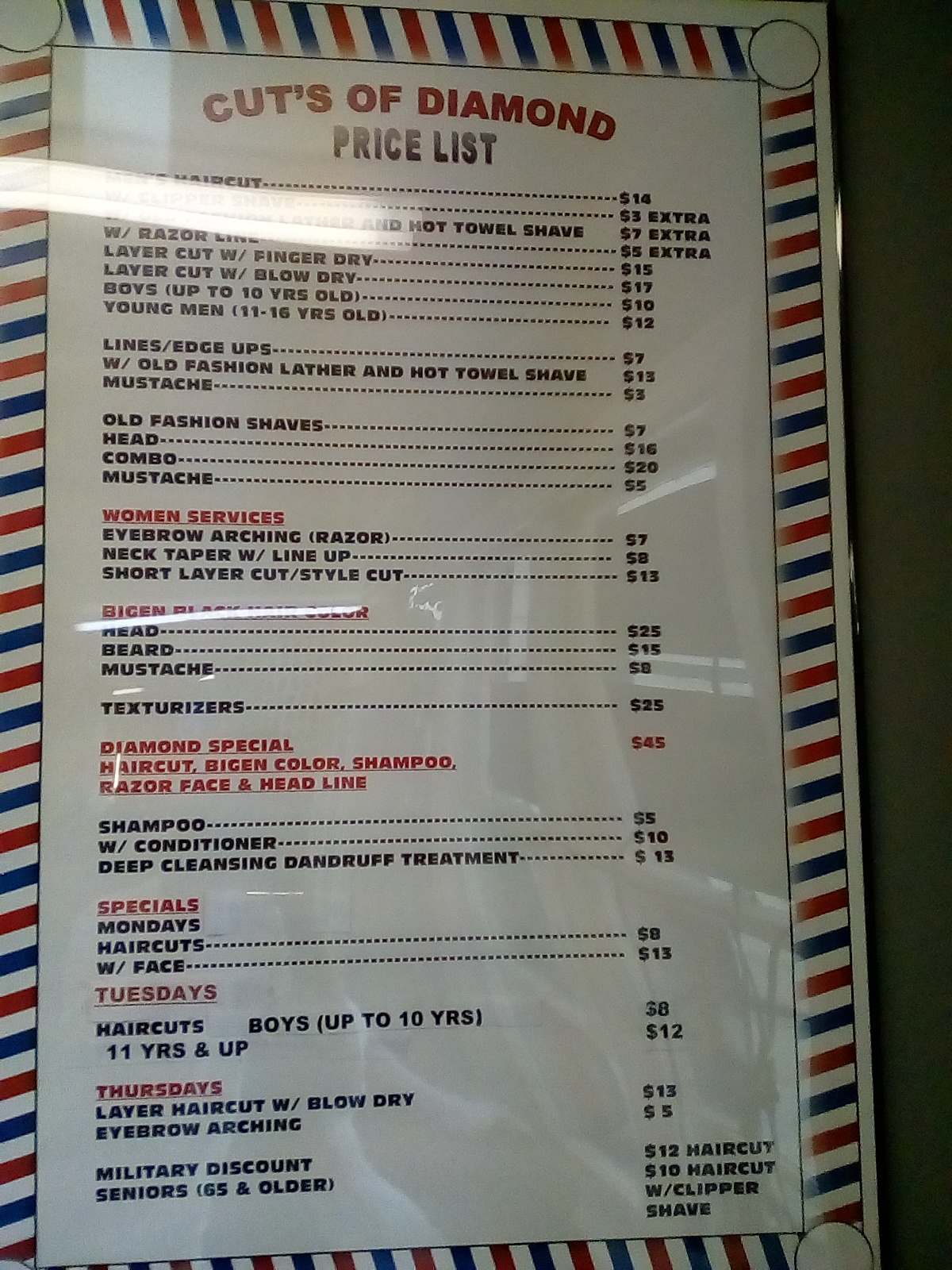 My father and I both received a haircut for Mr. Diamond. He took his time he asked for your preference . Most importantly, he’s very professional. My father and I will be returning.
