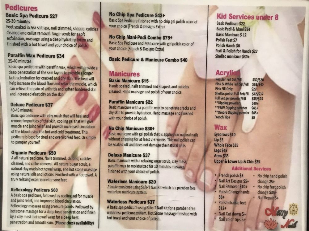The only place I'll go to get my nails done. They always do a great job and have a great selection of colors. I've tried other places and none of them are near the quality and performance as Merry Nails.