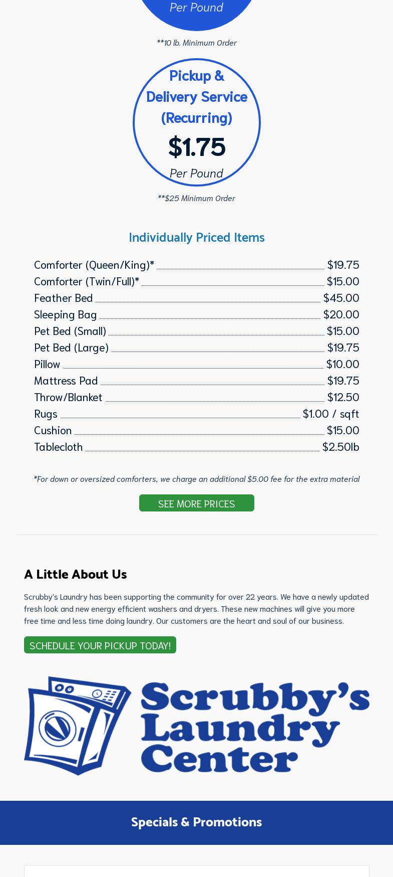 We have been using Scrubby’s drop off laundry services for YEARS! We drop off our clothes, they wash, fold, and have ready usually same day! This has truly been a huge lifesaver for our hectic lives! One less thing on our chore list and they are so kind, remember us when we come in, very personable and we have never had any issues with our clothes. They are always mint clean and perfectly folded. We just have to put them away when we get home! I highly recommend them to anyone and everyone looking to gain back a few hours of their time or looking for laundry services!