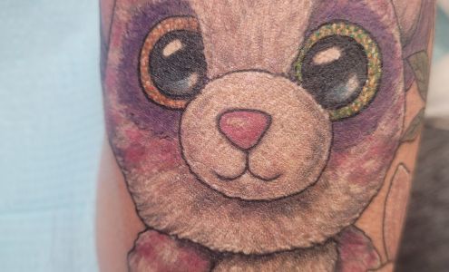 “Nick is fabulous, he's such a sweet man! And so talented too. My sister got this tattoo done by him, and I'll probably be coming back to him when I need my text tattoo! The shop is clean, cool, and inviting. Not a scary tattoo experience at all. My sister is really happy with the piece, and I think it looks phenomenal! He drew up the sketch, and made sure she was completely happy with it. And! He touched it up for free a few months later, since colored tattoos fade a little.“