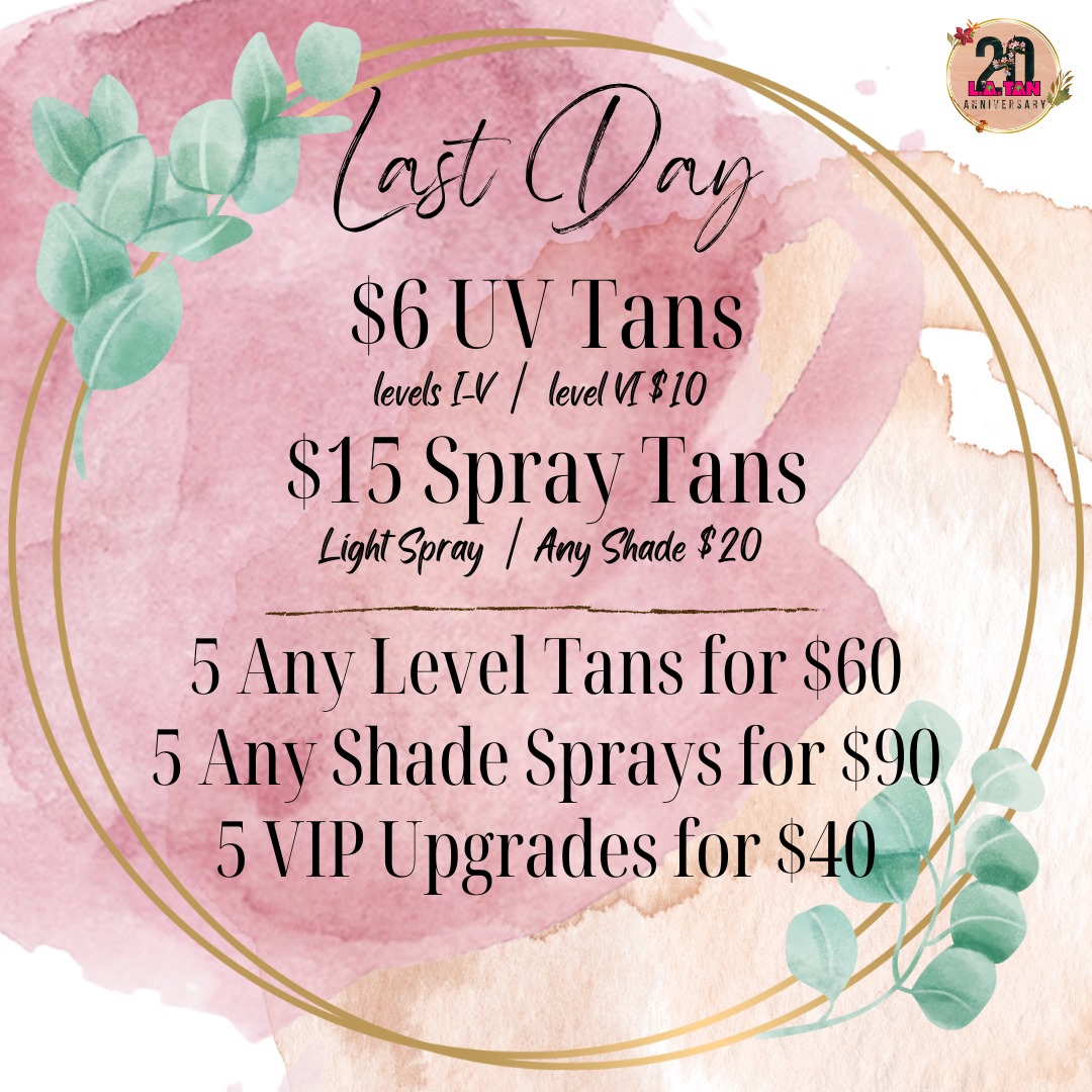 beautiful place <3 they often decorate their studio and provide drinks & snacks in the waiting room which is nice (๑ᵔ⤙ᵔ๑) for example today they had cookies, chips, and water. they also give constant discounts on tans & products which i’ve actually bought & loved! all my tans come out beautiful. the staff is friendly, the place is clean, and cute.this LA tan specifically is a gem and i’d opt coming here over other locations since this manager and staff team clearly cares about customer experience (: