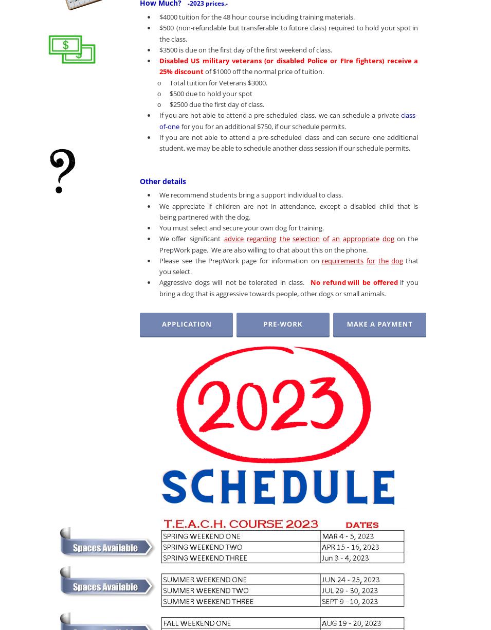Tammie and Robert are wonderful to work with. I have had several success with them. I would recommend them to anyone. I have Great Danes as Service Dogs and they have always done a great job.They work with you one on one and show you techniques to use. Their program called TEACH is great.