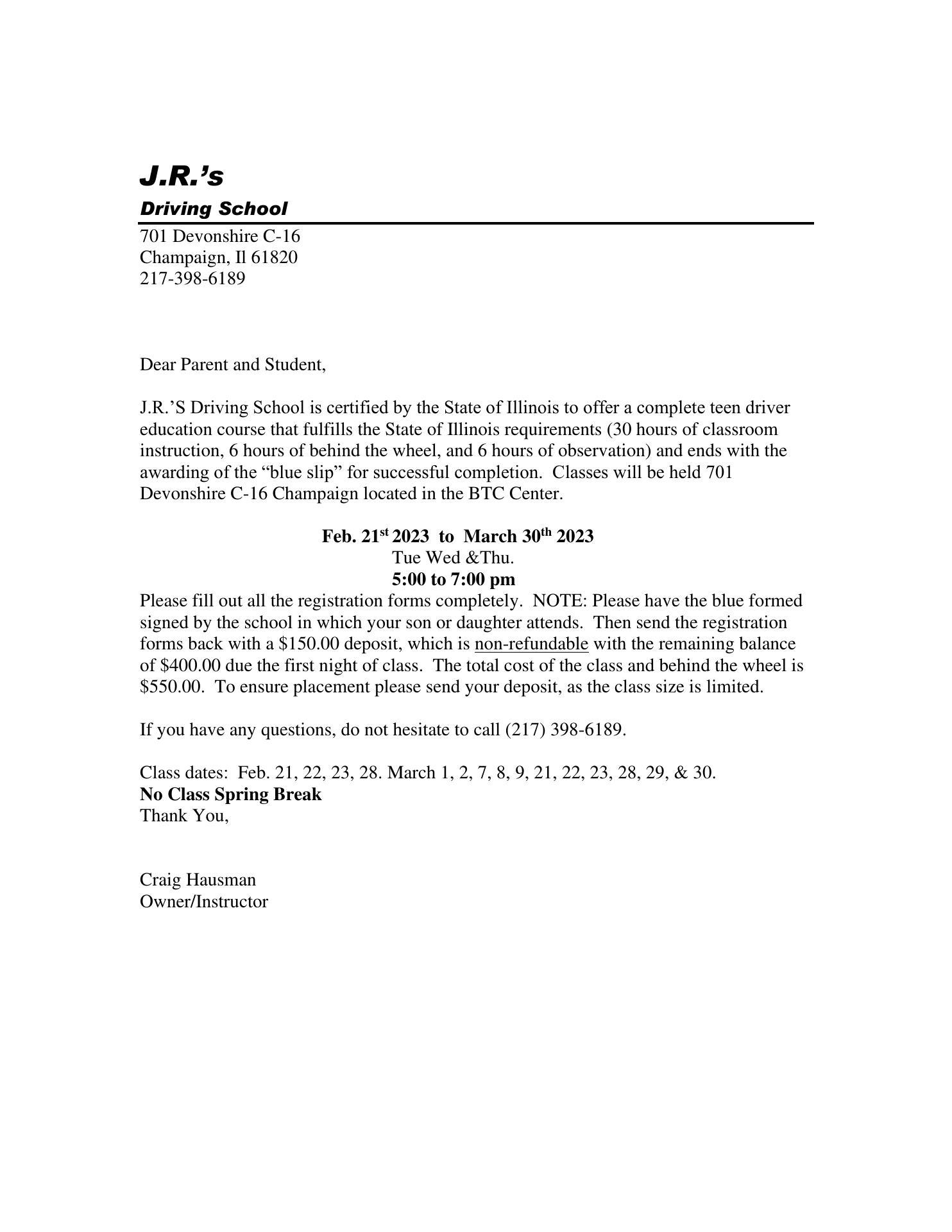 This place was amazing. The owners are super helpful and the remedial course was insightful.. super Awesome people all around that are dedicated to helping with driving related issues. I highly recommend Jr's driving school. Thanks for all your help.