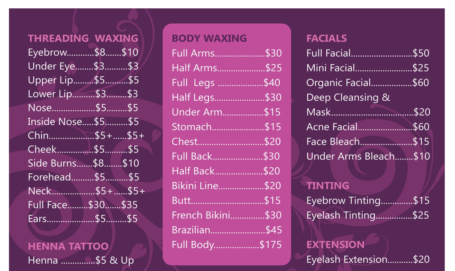 I’ve been here several times now for eyebrow threading and tinting. I’m always anxious to get my brows shaped because they are very thin, but Radha does a wonderful job of giving them shape and definition. Her tint is also perfect. Radha has helped me most often and always does a great job but I’ve also been helped by her colleagues and I’ve never been disappointed. The whole team is great!