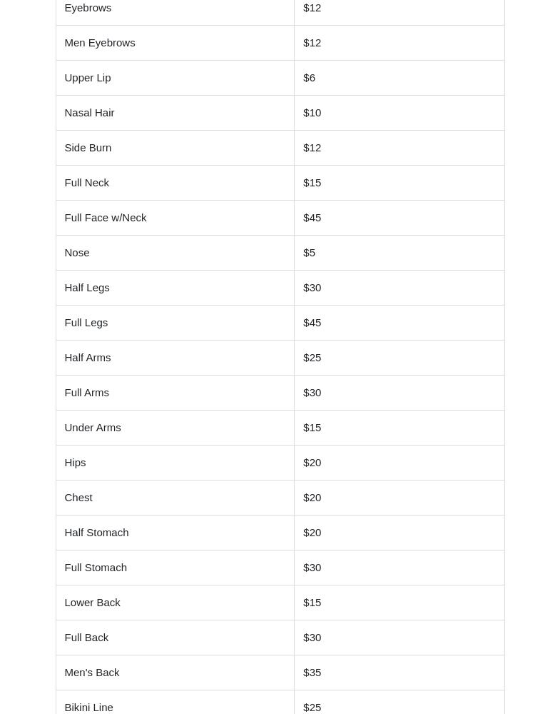 Have been coming here for the last year to get my eyebrows threaded and waxed and they do an outstanding job every time! I always feel like they take their time and are consistently so kind to me when I come inService: Body waxing