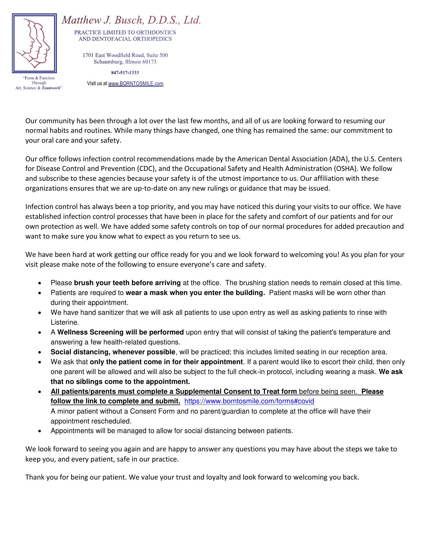 Dr. Busch, Angela and the whole team are outstanding. They did an incredible job putting my son's braces. Their expertise is superb. The whole office staff is professional, polite and dedicated.