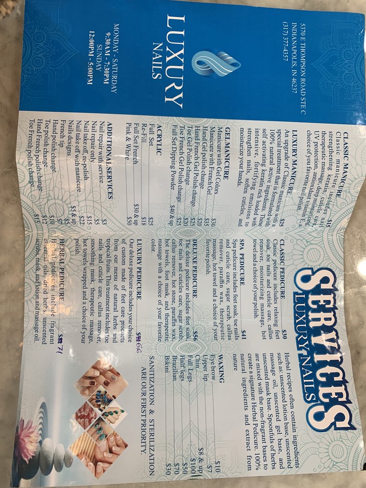 I am trying local nail salons to find which one I like best. I will give Luxury Nails 3/5 stars. I asked for a basic manicure and a gel pedicure. The total was $71. My biggest gripe is that my nails were just painted. Is that what a basic manicure consists of these days? I assumed my cuticles would be pushed back, any hangnails treated, cuticle oil, etc. I received none of that here. I could have just painted my nails at home I went with the basic pedicure which is just that.. basic. It seems like it is mostly based on giving the legs a massage but I would've rather had my feet cleaned up. Only a few days later and my feet are rough again. Customer service was... read full review