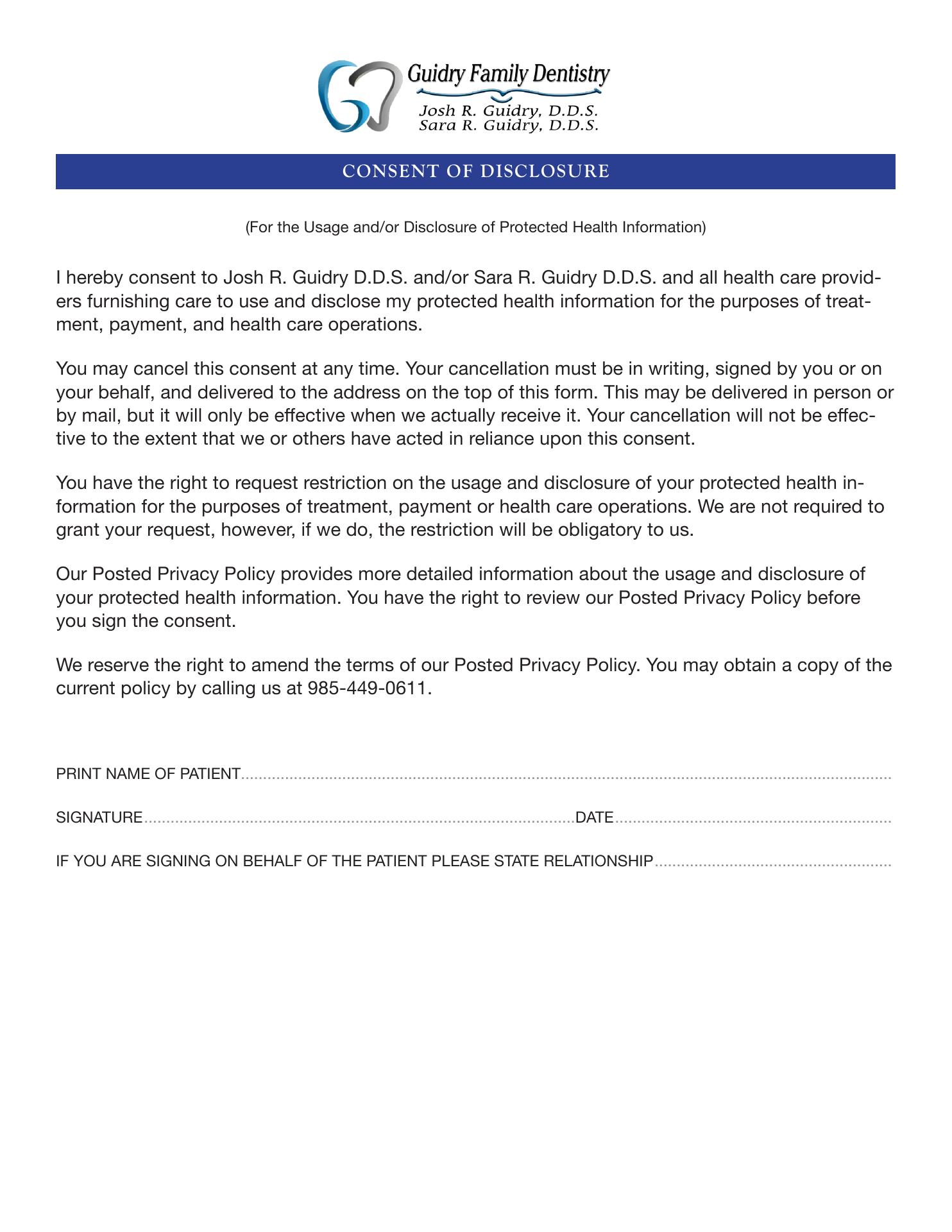 Always the best dental experience. Everyone is friendly and efficient. The dentists are highly skilled, and provide excellent individualized care, looking out for the best interests of each patient. Both doctors Guidry are incredible.