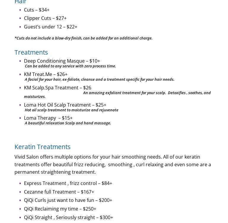 I've been a customer of Vivid's for quite a few years. I have ALWAYS been met with professional and genuine courtesy and kindness. The team has been amazing to work with. Mark and Kelly are amazing. My personal hair professional is Tobi. I couldn't ask for a more down to earth, expert Hair Professional. She is able to take my visions and make them reality. Love this Salon and will continue to promote their business. Keep up the great work!Services: Haircut