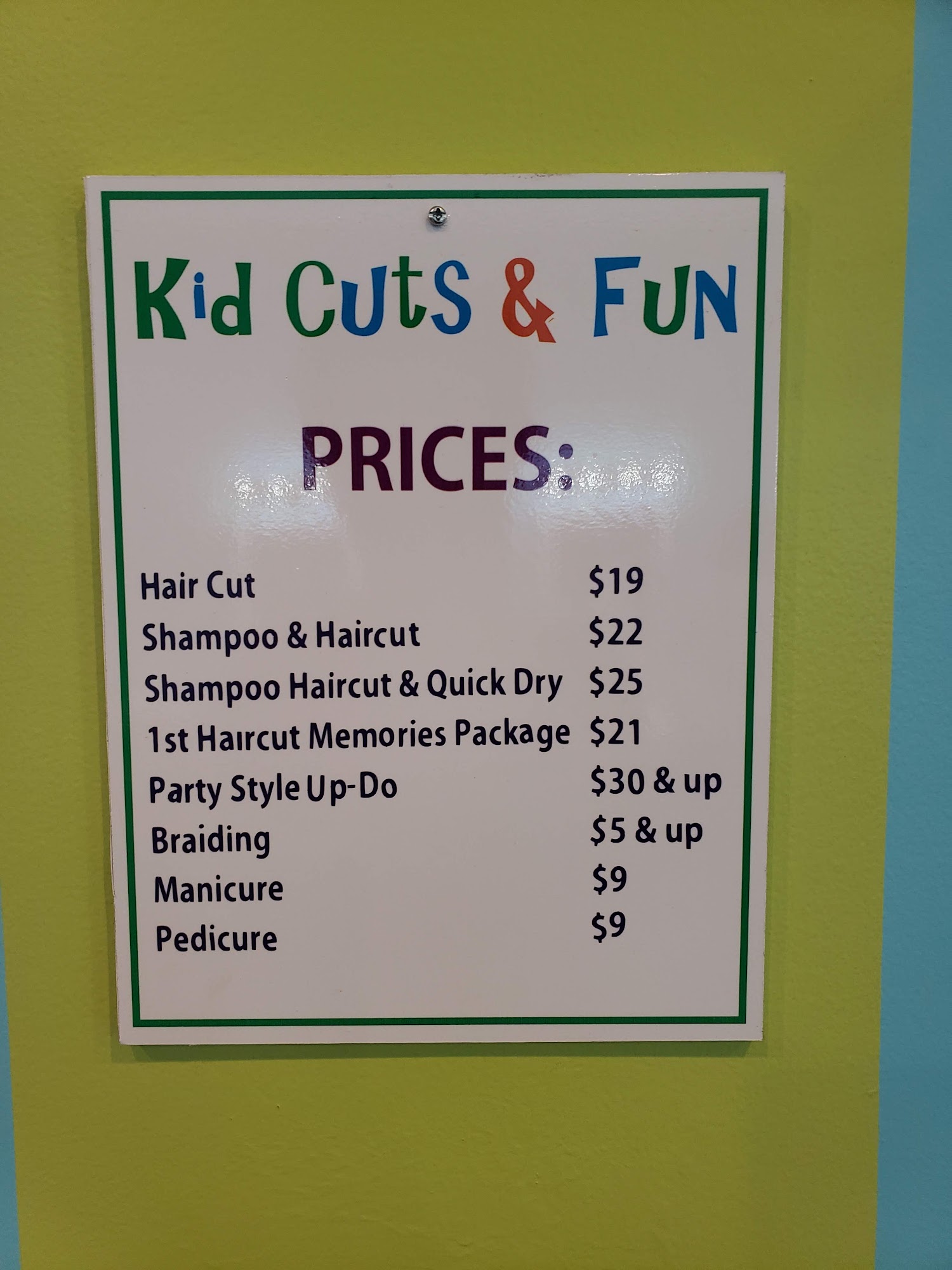 I took my 1 year old grandson here for his first cut he was not very cooperative and moved and cried the whole time despite she was very patient and did a great job we were very happy