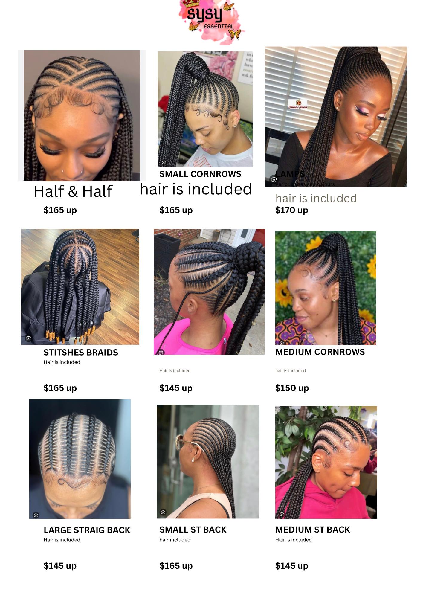 If you need a quick and professional braid call sysy . She did medium box braids for me in 2 hrs and also she washed my hair ,clean and professional thank you ,only thing it's appointment only