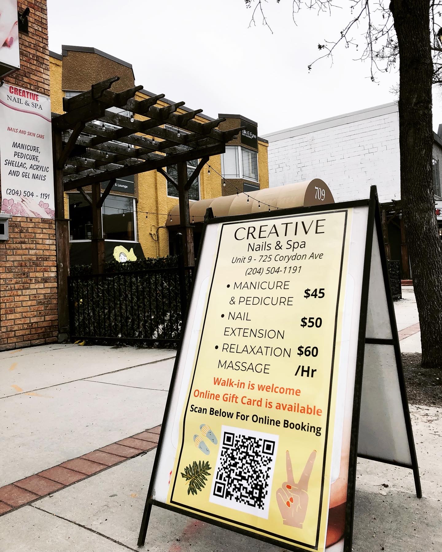I just got my nails filled and a pedicure and I am so happy with my experience at Creative Nails and Spa! This is going to be the nrw regular place I go to :) The lovely ladies were so friendly and welcoming and my nails are so beautiful!