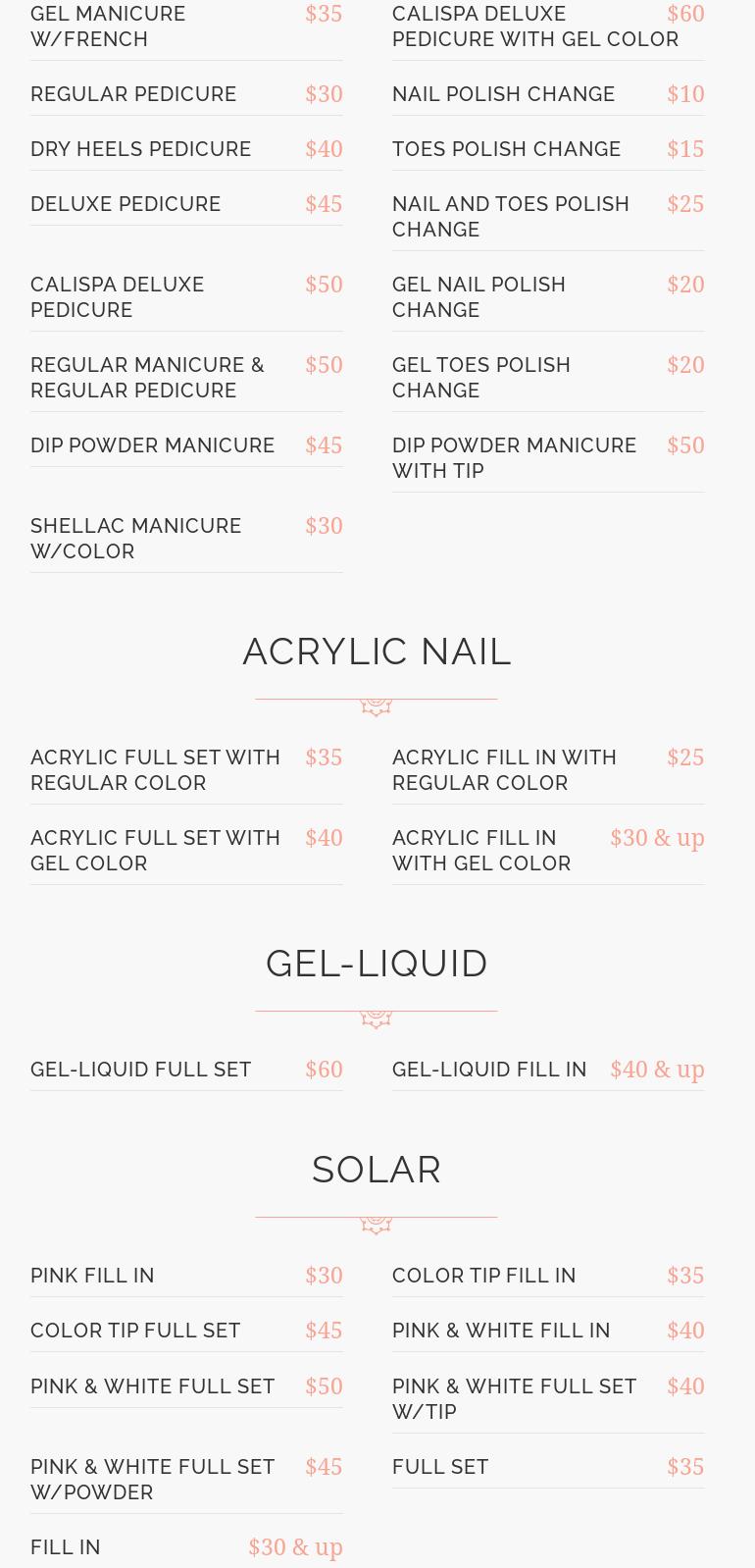 The owners were extremely nice and my service was good. However I was overcharged! I received a basic manicure and a face wax. I was charged $80. I didn’t even bother to argue or question the price because I was headed to an interview and didn’t want to be late. I just paid and decided to never return. Lost the opportunity for a loyal customer for $30.
