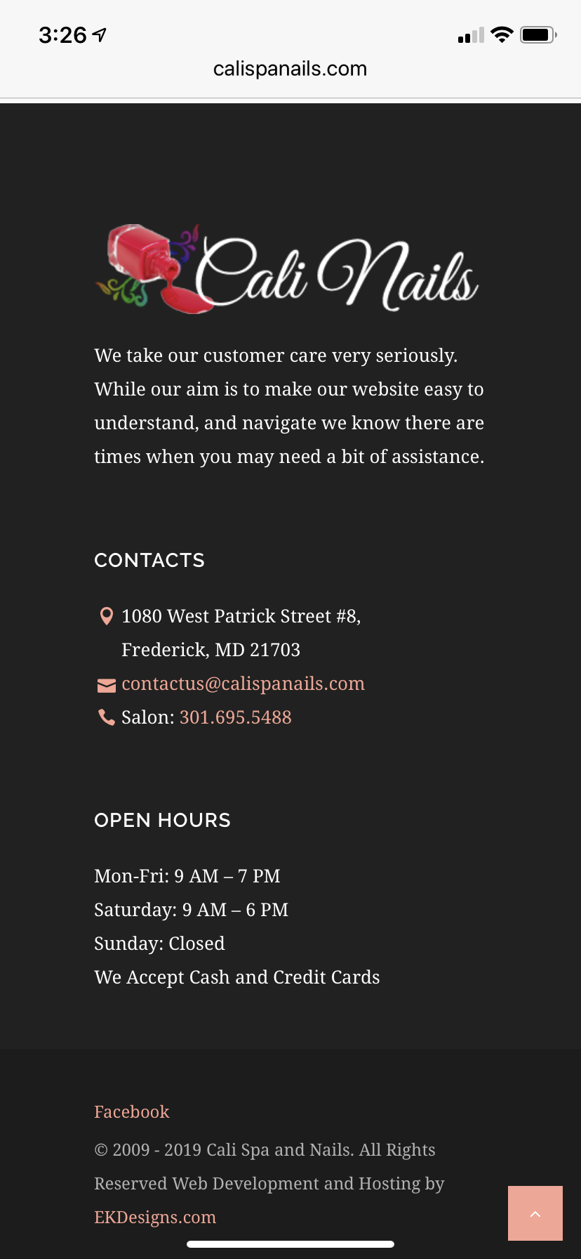 I love Cali nails! They're the best in Frederick and have amazing prices and staff. Cindy does my acrylic nails perfect every time and Grace does amazing pedicures! highly recommend :)