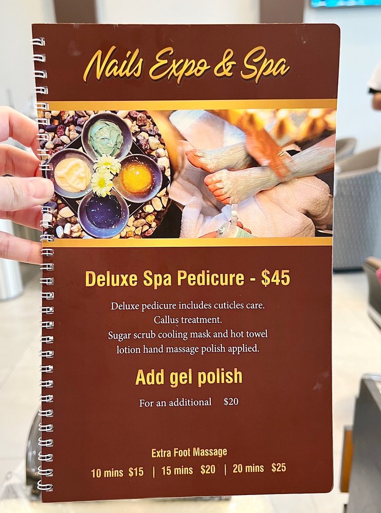 Today's visit to Nails Expo & Spa was quite refreshing. Unfortunately arrived just before close but they were able to accommodate for a pedicure. I chose the Charm Spa Pedicure which does include callus treatment, sugar scrub cooling gel, hot towel, hot stone cream and hand massage, paraffin wax, and cuticles care. This package is valued at $65 dollars for about it an hour worth of treatment. Special thank you to Kim and Cici who made today's experience possible. The atmosphere is quiet, relaxing, and well lit. The staff here are generally very professional. I do recommend you give them a try for your spa service needs.