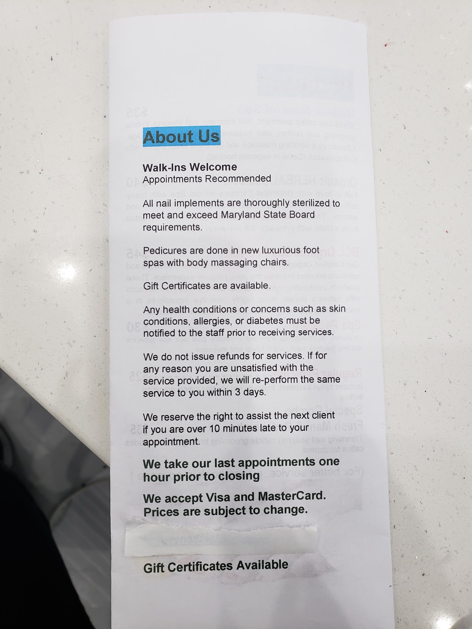 My friend and I didn’t quite know what we wanted but the general idea was just “We want French Tips” this is the definition of going above and beyond ‘What I asked for/wanted VS. What I got’ Lynn was my stylist and she did an OUTSTANDING job— she took care of me with VERY MINIMAL explanation as to what I wanted. Once I showed Lynn my desired style, she was on a roll. She also free-handed a design on my ring fingers which was a surprise but she did a fabulous job AND she was QUICK! I will always come to get my nails done at Herbal Nails, the customer service is amazing and funny, the talent of these nail techs and cosmetologists is out of this world.