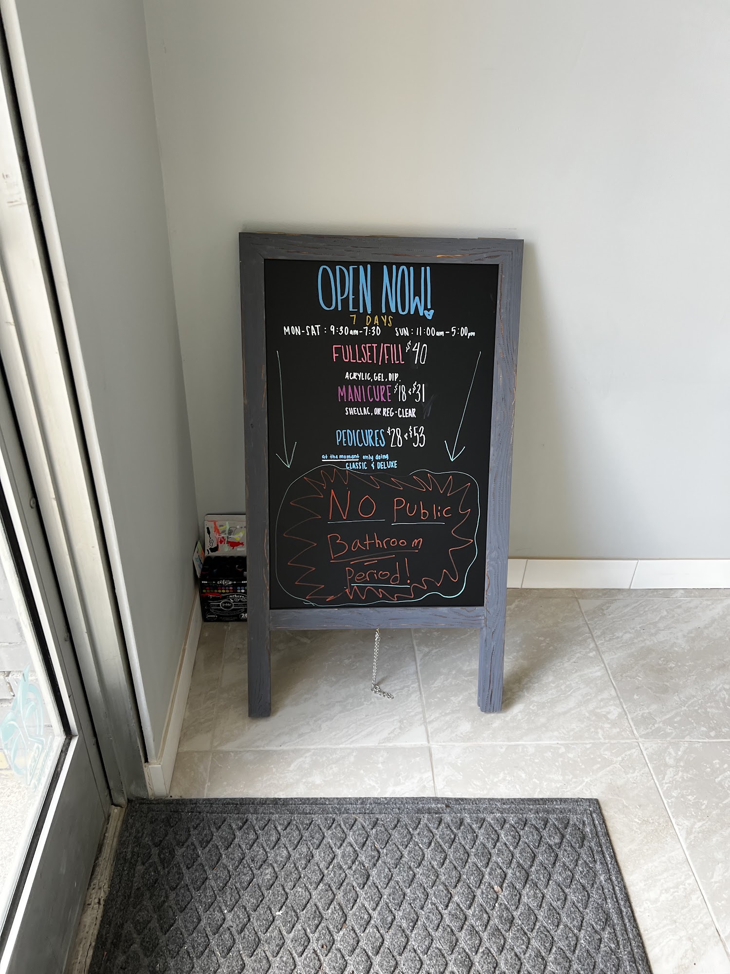 Amazing staff and great environment!! Anna served me the whole time and she was very attentive and funny. She made sure I liked everything from beginning to end. I’m definitely coming back and asking for anna again. This set was about $75, which is so cheap considering the amount of detail in the nails. If you come here make sure to ask for anna!