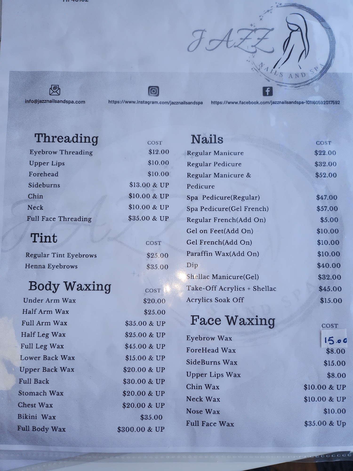 I have been to Jazz on three occasions and have been very impressed each time. Meticulous nail prep and flawless application. I have had three gel manicures and two regular pedicures. I cannot say enough about the professionalism and flawless technique.
