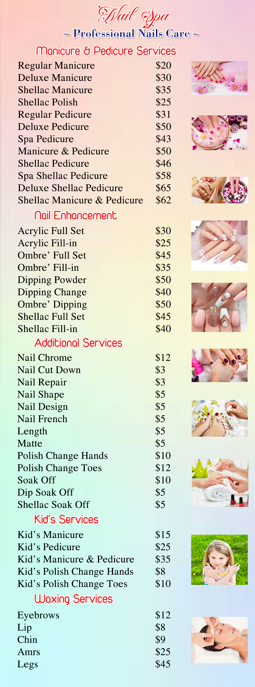 I went in only getting a pedicure but I asked if it was possible to get tips as well and they said yes and even helped me take off my press ons. Ruby (I think that's her name) was absolutely amazing and phenomenal. I 1000% recommend them especially her, she was so sweet.