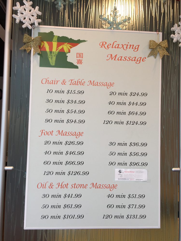 I have gone here for years. You wouldn’t expect the mall to have great massages but this place does it right. Highly recommend. The key is asking for more or less firmness if they start off with a pressure you don’t like. Also, since this is a service, you should be tipping.