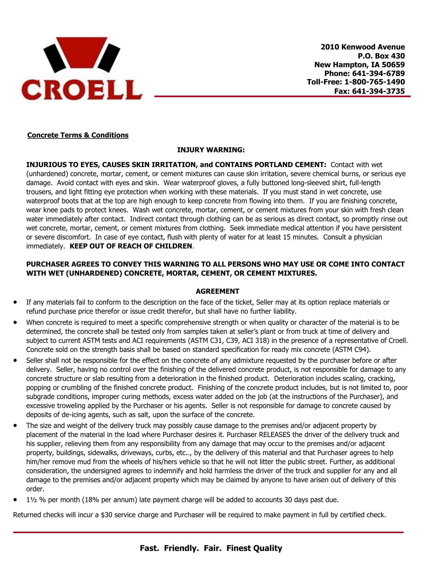 I love working for Croell. Great management, great trucks, amazing customers and no discrimination being a female driver. I quit my last job after 15 years to work for Croell full time. I have 0 complaints. They treat me great!