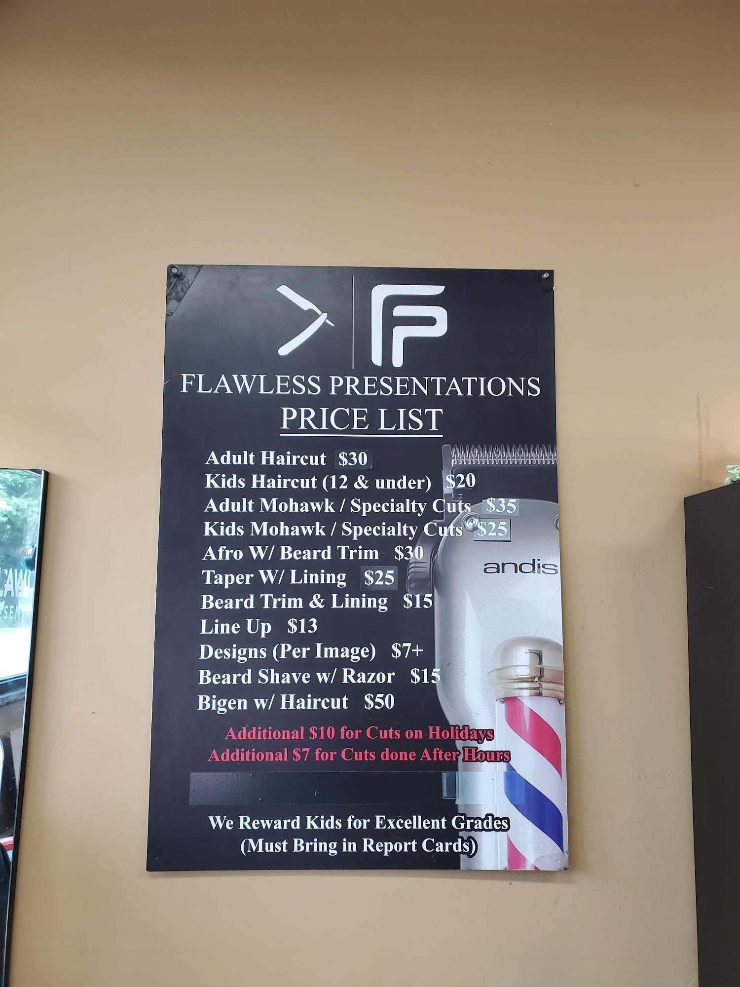 This place is amazing friendly staff family environment affordable prices I took my son here to get a back to school style and they definitely rocked it Cali was his barber and he definitely hooked it up and knew what he is doing great professional team of people will definitely recommend and be returning as hey I'm gonna need a trim sooner than later