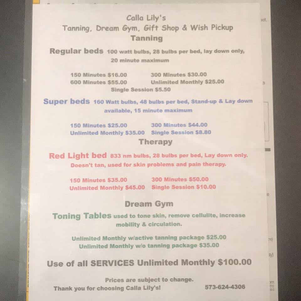 Amazing place and super nice,,,,I felt welcomed soon as I walked in the door and I felt so good after tanning and using the toning beds,,,I would recommend calla lily's to everyone