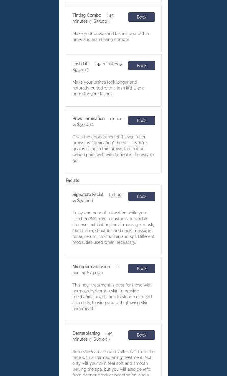 I got my eye brows waxed and a facial! It was the best facial ever, so relaxing. Great atmosphere and Tiffany is so easy to talk to and makes you feel so comfortable! The eye brow waxing was wonderful, they look great and she went above and beyond to make sure they were perfect! Great experience and am booking more services NOW.Services: Skin treatments