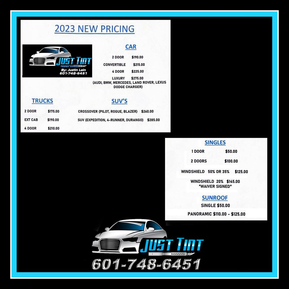 Justin at Just Tint is absolutely awesome!! He does excellent work - a very thorough job of cleaning the glass to make sure it is completely dust free and the tint is applied perfectly! Excellent customer service too! He has several options, so you can get the dark appearance, without changing your ability to see out at night. He also has ceramic options - the difference in the temperature of my vehicle after it has been sitting in the sun for hours is unbelievable! I don't know how i ever drove a car without tint!