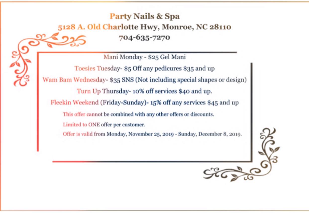 Myhusband and I both love Party Nails. Cindy is our "go to" for amazing pedicures and SNS nails for me. Everyone is friendly, the salon is clean, and well maintained. I couldn't imagine going anywhere else!!Services: Men's manicures