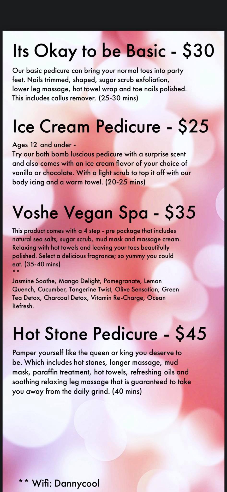Love love love this place. Best place in the area for a pedicure. Love the hot stone one. I feel like other places I’ve been to rush to get you in and out but here is a relaxing experience and they take their time with the pedicure. Also love the Thai tea and iced coffee there while I get the pedi. Staff is friendly and talented artists. Got a manicure w a cute design and the girl did a wonderful job making sure everything was even and shaped carefully.