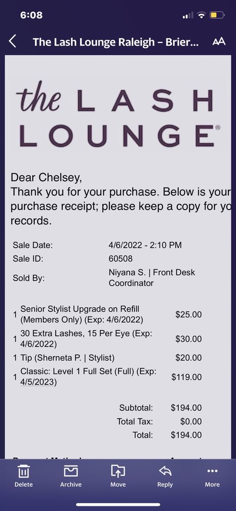 I had the pleasure of having Lia apply eyelash extensions on for me last week. She was extremely pleasant and professional. The receptionists there were two of them were super helpful and kind as well. I look forward to getting my refill next week.