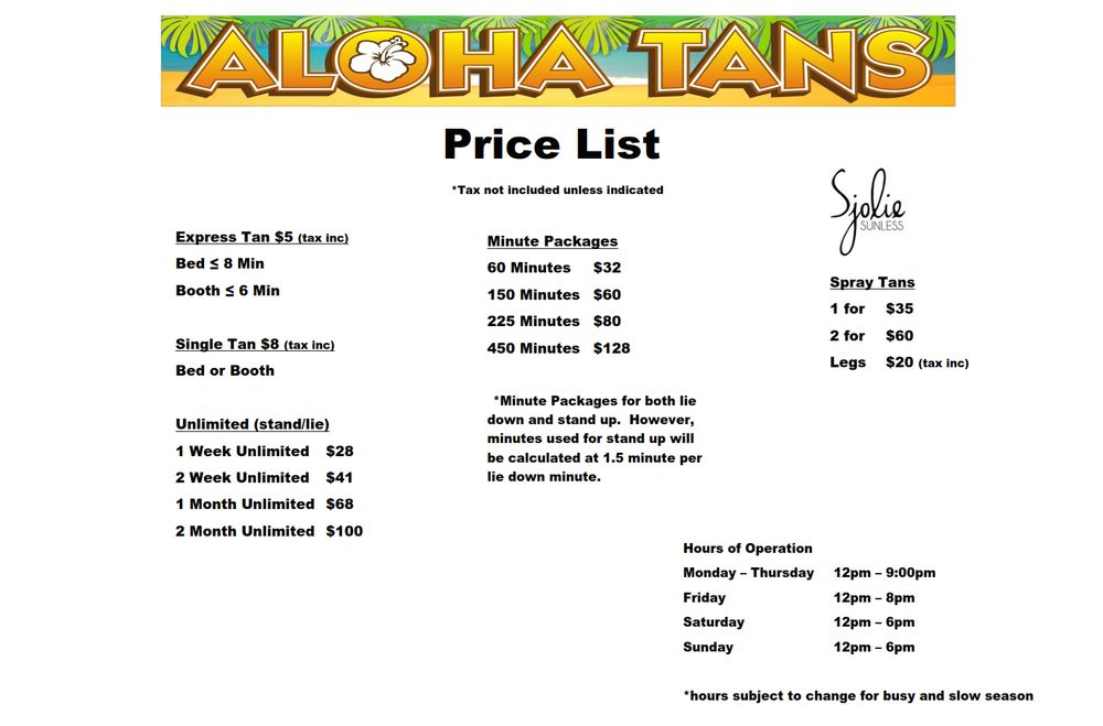 I am coming here a long time, it is Affordable it is clean air conditioning is great, the beds and stand up are consistently clean, and the maintenance is always on top, I would recommend Aloha to anyone, I have multiple times. I have to make this point, it says a lot to me about aloha and the credibility and consistency, how loyal the women are that work here including the owner the same women working here since I have been tanning at aloha when it was on Topsail Road, and now they are on Bannister streets and even works out better for me because it's closer to my house.