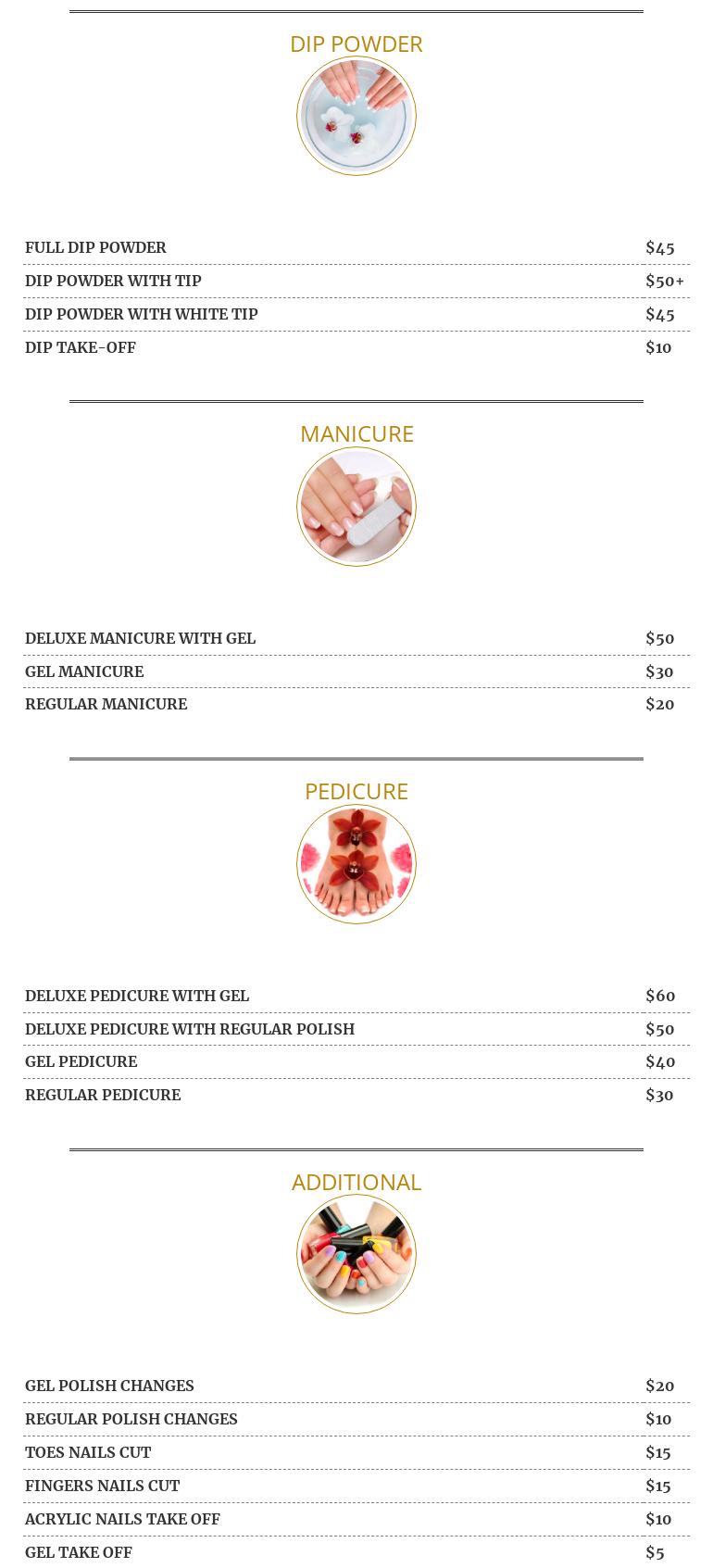 I absolutely love getting my nails done here. This is mine and my daughters go to! They never disappoint. I am very picky and come in with wild design ideas and they always do incredible. The place is extremely clean. The staff is friendly and I like the relaxing music and enjoy the cooking channel. I highly recommend this place.
