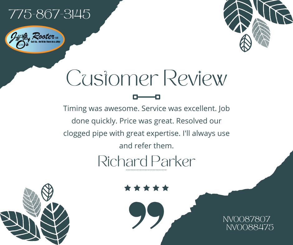 We had a blockage in the sewage line. I called Jiffy O’s Rooter and they arrived within an hour. Scott took care of the problem and the bill was very reasonable. I highly recommend Jiffy O’s.