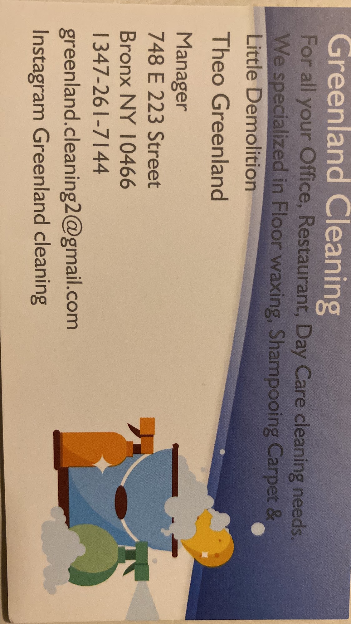 Theo is incredible! He cleans our hair salon with a team of 10 messy artists, and always leaves it looking brand new. He’s reliable, honest, resourceful, and extremely kind. His prices can’t be beat in NYC, and I’m very grateful to have someone who cares about their work. There’s nothing Theo can’t do. Thank you Theo Greenland!!