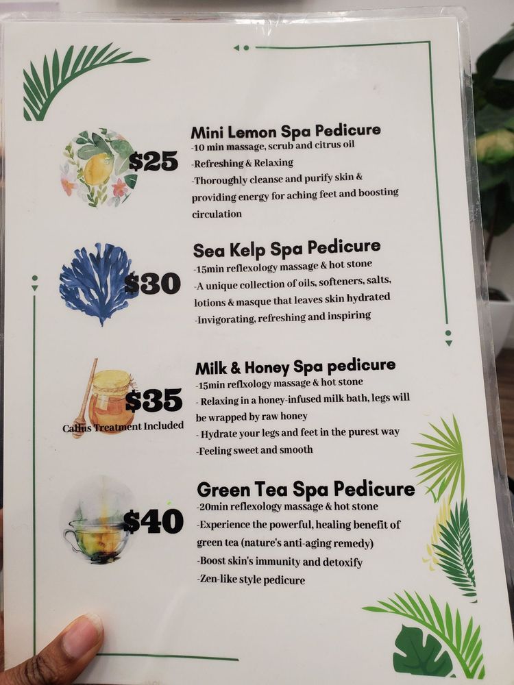 I Recommend coming here, they greet you very kindly and take you in the time of your appointment, every time I go there they do their very best on the nail designs and each time they come out very beautiful. Highly recommend!