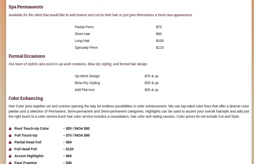 Worse experience I've ever had. Had a keratin treatment no education or certificate to do at her business. The treatment wasn't applied right or bad, over charged to keep her business running. Beth is very unprofessional and tried to blame Gina for the poor service. Also promised full refund and now fighting her on service that was provided incorrectly or shelf life bad through my bank. She stated she couldn't keep a stylist for long. That the keratin treatment wasn't done often at her salon. Told me this after the fact when I washed it and realized it didn't work. Now I completely understand why!!! She lied and is dishonest to get her way. No... read full review