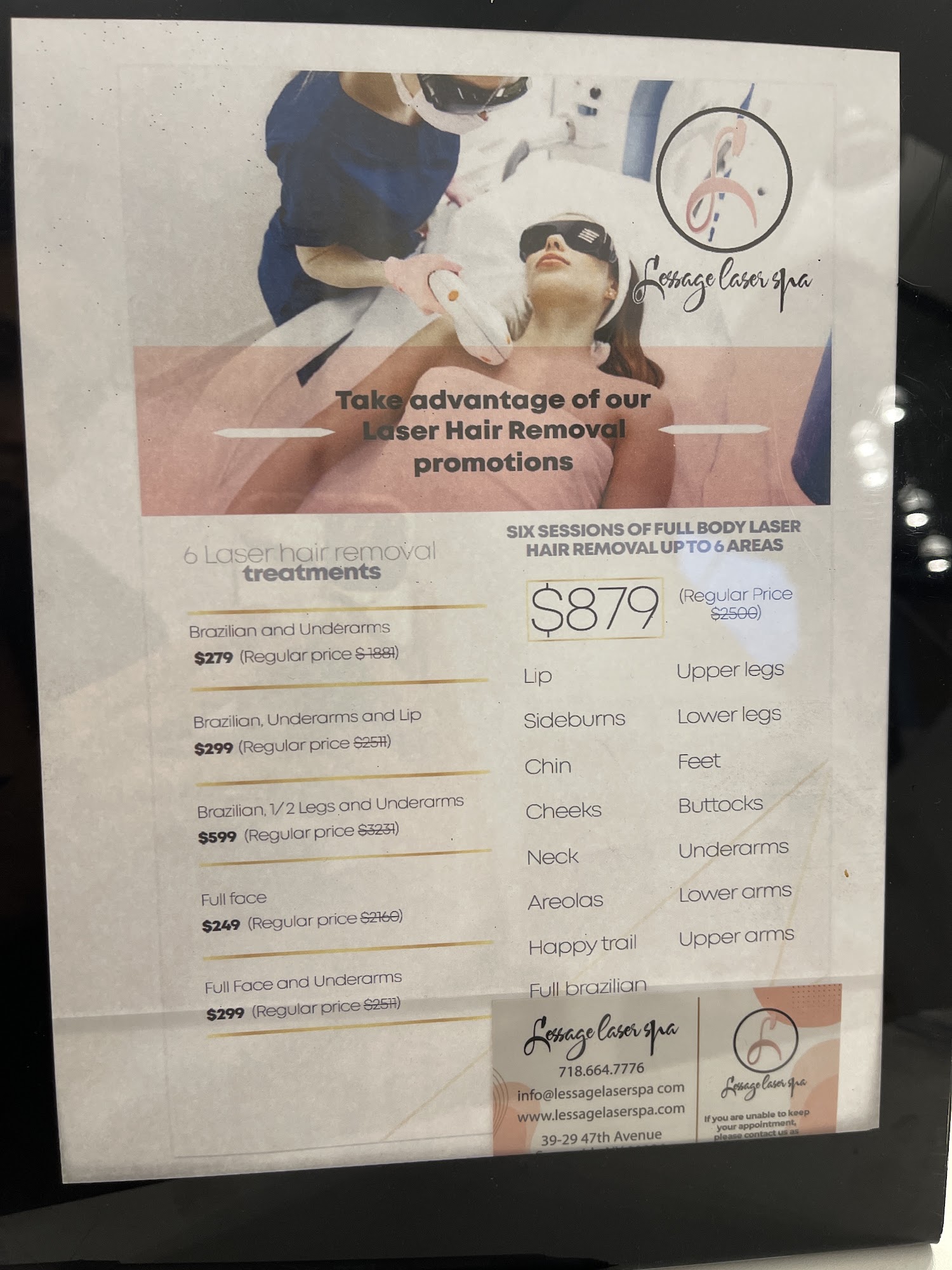 The space is clean and everyone is attentive. It is super close to the 40th Street and Queens Blvd stop on the 7. I had laser hair removal years ago and this was so much easier and more pleasant. I also find it affordable. These people try and gouge you everywhere you turn and this seemed appropriately prized.