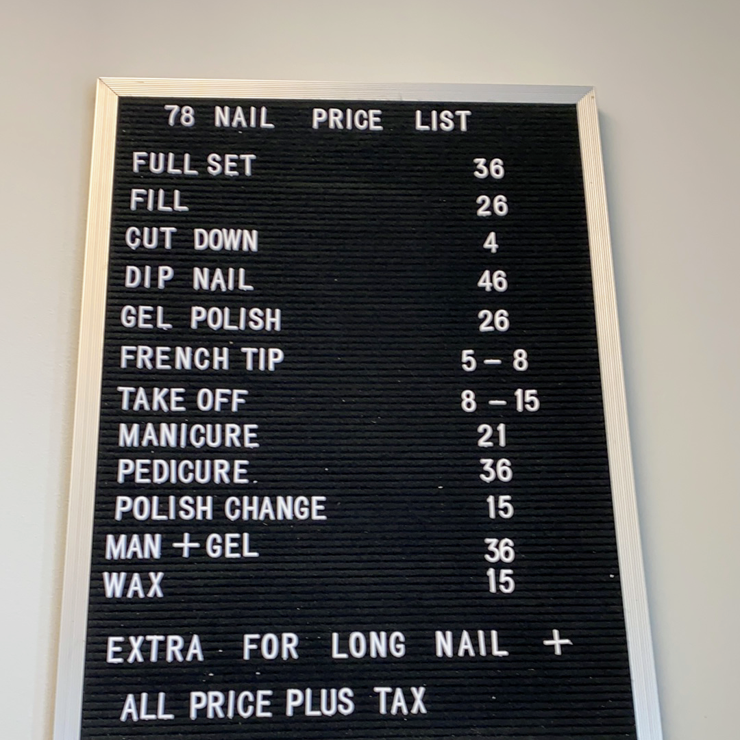 This place is a gem. Family ran business with excellent service, clean and efficient. The owner gave me a consultation on how to go from acrylic to gel and nurture my real nails back. I really appreciated his insight and recommendation. I had an appointment but a few walk ins came in too and they were seen or booked quickly. Often times salons have you wait but this salon is efficient. My new gel dipped nails were beautiful and natural looking. I'm going back for a pedicure!Give this place a try and then stroll to one of the restaurants to have lunch. Closed Monday and half day Sunday.