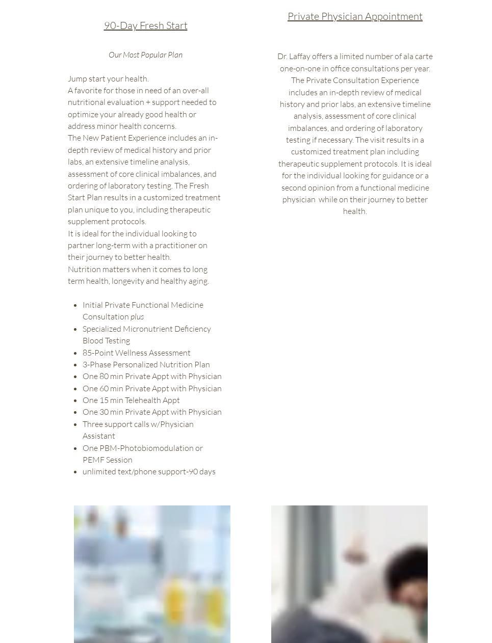 Dr. Laffay and her medical staff began with an in depth assessment of me, my health history, my concerns, my goals, and came up with a treatment plan we all agreed upon.